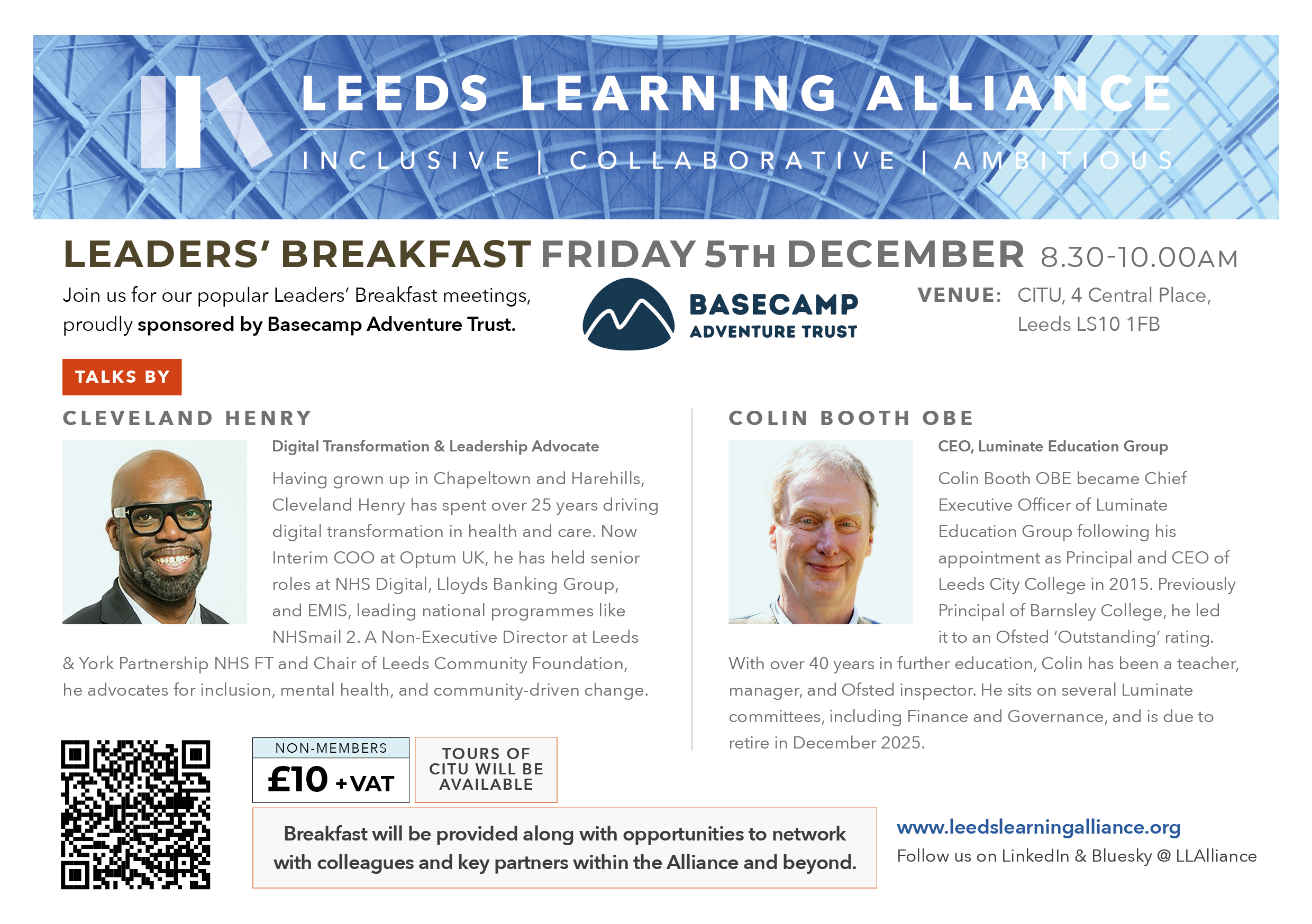 Join us for the next Leeds Learning Alliance Leaders’ Breakfast at CITU on Friday 5th December, 8.30 – 10.00am.